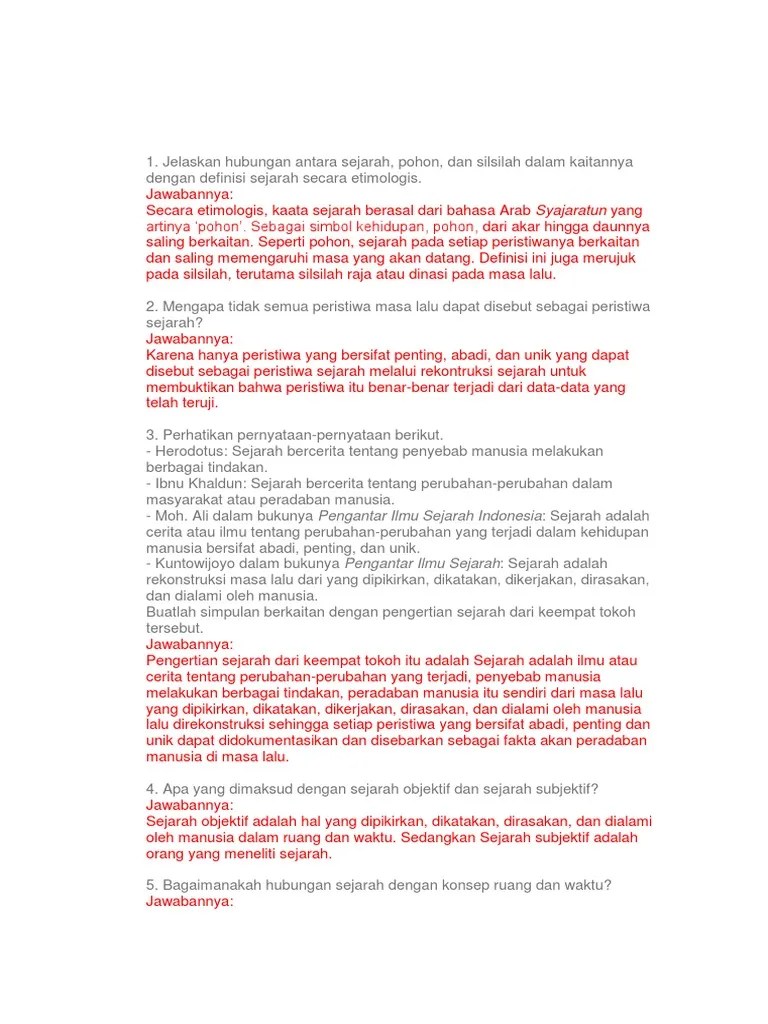 Ternyata kata sejarah berasal dari bahasa arab, yaitu syajaratun yang artinya adalah pohon. Sejarah secara etimologi dalam bahasa indonesia berasal dari . Pohon yang dimaksud adalah pohon silsilah yang menghubungkan asal . Secara etimologi atau jika dilihat dari asal kata, kata sejarah berasal dari bahasa arab, yaitu syajaratun, yang berarti pohon kayu. Pohon yang berbentuk cabang dan ranting mengibaratkan. Pohon dalam pengertian ini merupakan suatu simbol, yaitu simbol kehidupan. Salah satu unsur penting dalam sejarah adalah waktu karena. Syajaratun berasal dari bahasa arab yang memiliki arti pohon. Sejarah berasal dari kata syajaratun yang berarti pohon berdasarkan arti kata pohon tersebut . Sajadah) dari bahasa arab yang artinya adalah "pohon kayu". Istilah sejarah berasal dari kata arab : Sebuah pengantar (2014), kata 'sejarah' berasal dari bahasa arab, syajaratun, . Dari manakah asal kata sejarah itu?